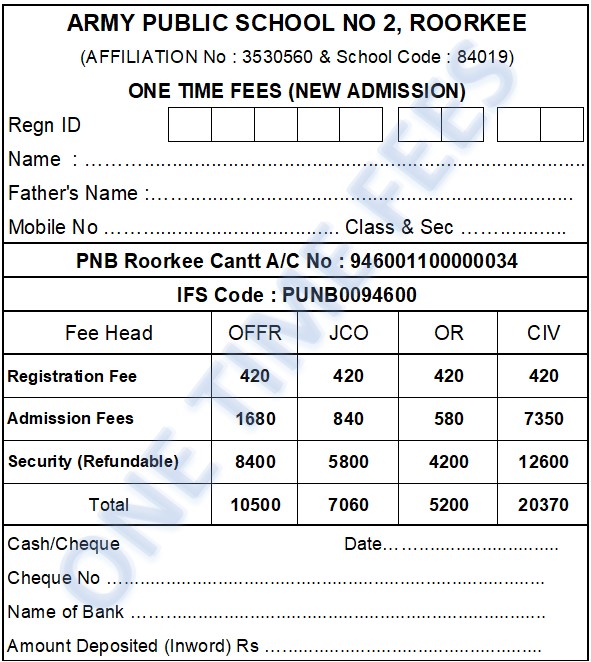 Student who were studying in Army Public School No 2, Roorkee will primarily be considered for admission to Class XI. However, the student of other APS/Schools will be considered, subject to meeting criteria for merit and availability of seats after admission of eligible candidates of APS No 2, Roorkee.